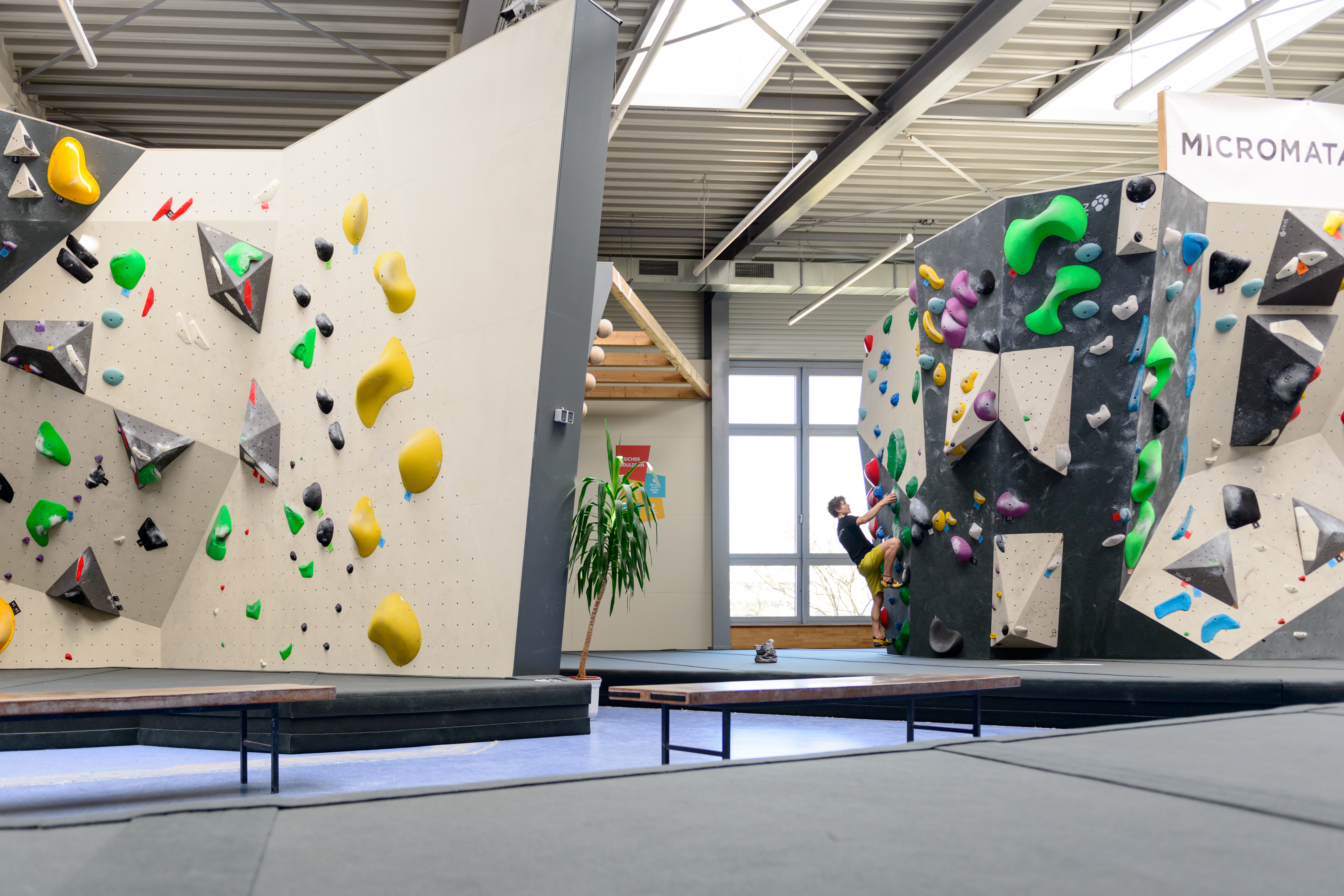Die neue Boulderhalle bietet Dir durch die Wettkampfwand, das steile Dach und die großzügige Platte genügend Platz an verschiedenen Wandstrukturen Dein Können zu verbessern. Bei den ca. 120 Bouldern ist für jeden etwas dabei – für Anfänger und Fortgeschrittene. Dadurch, dass unsere „kleine“ Boulderhalle für Gruppen und Kinder genutzt wird, entzerren wir den großen Andrang am Bouldern und Du kannst hier in Ruhe trainieren.