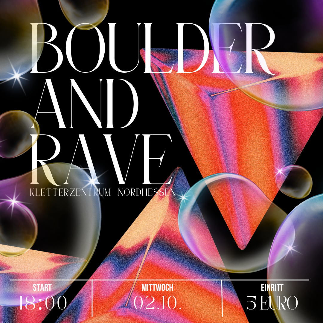 Am Samstag , den 27.09.2025, ist es endlich wieder soweit: Boulder & Rave steht vor der Tür! Markiert euch den Termin dick im Kalender – diese Kombi aus Bouldern & Beats dürft ihr auf keinen Fall verpassen.